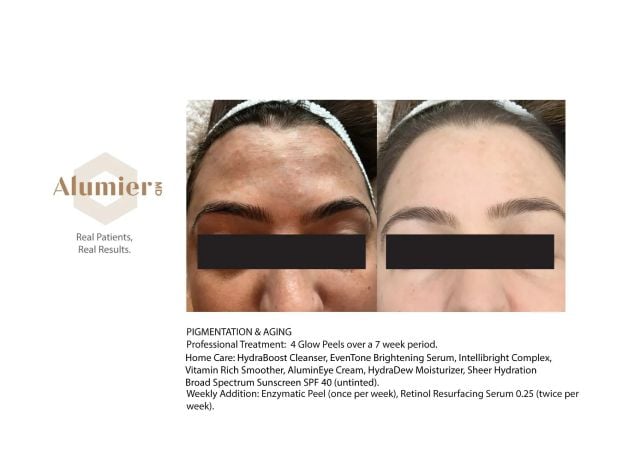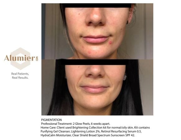 Glow Peels are an exceptional offering from our AlumierMD range of professional peels. This multipurpose resurfacing treatment couples the benefits of lactic acid, salicylic acid, and resorcinol to exfoliate and rejuvenate your skin, imparting it with an unmistakable youthful glow.